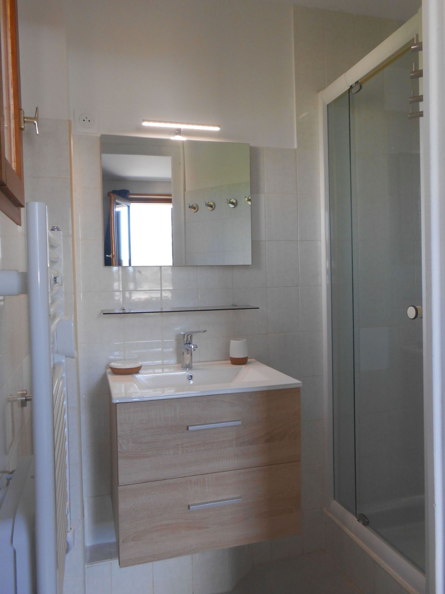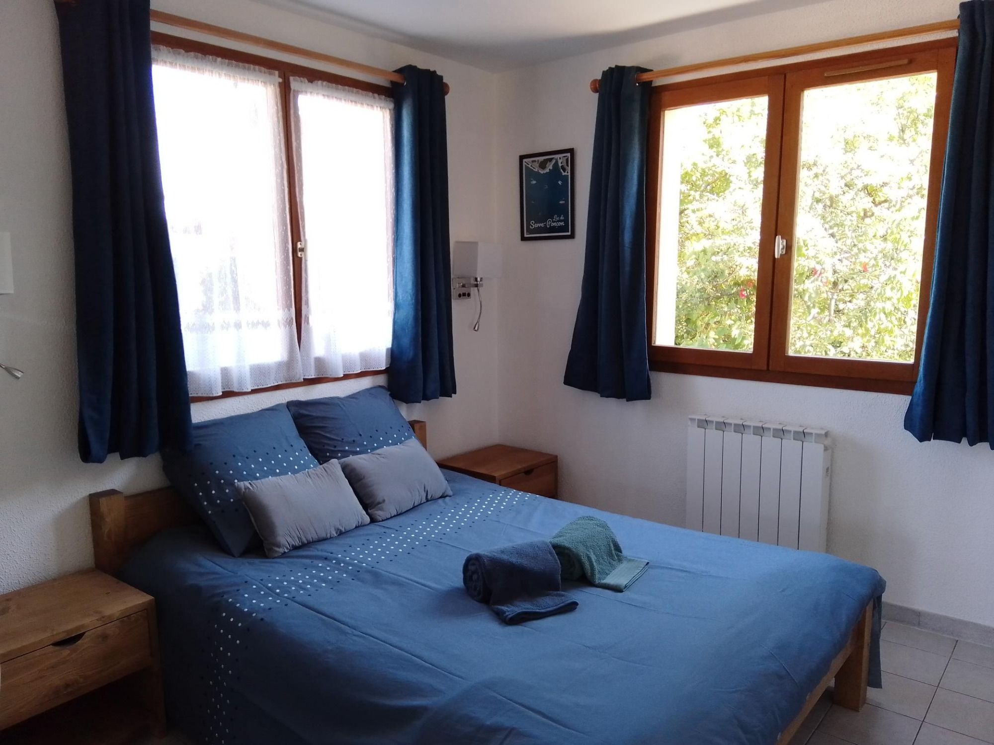Chambre spacieuse et très claire avec un lit double en 140cm. Salle de bain avec douche et WC séparé.